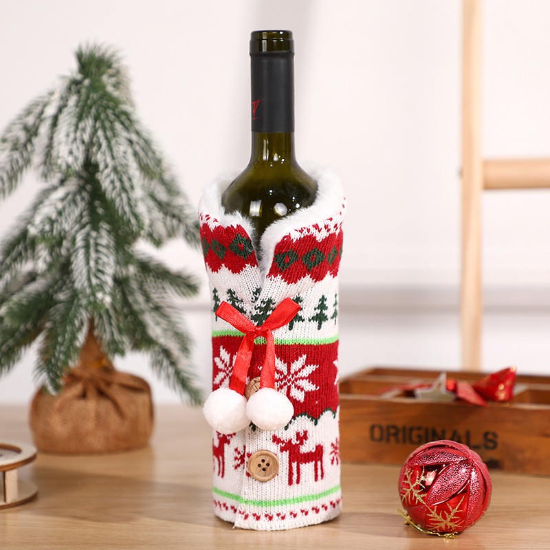 Чехол вязаный для бутылки вина или шампанского "Новогодний Свитер"
