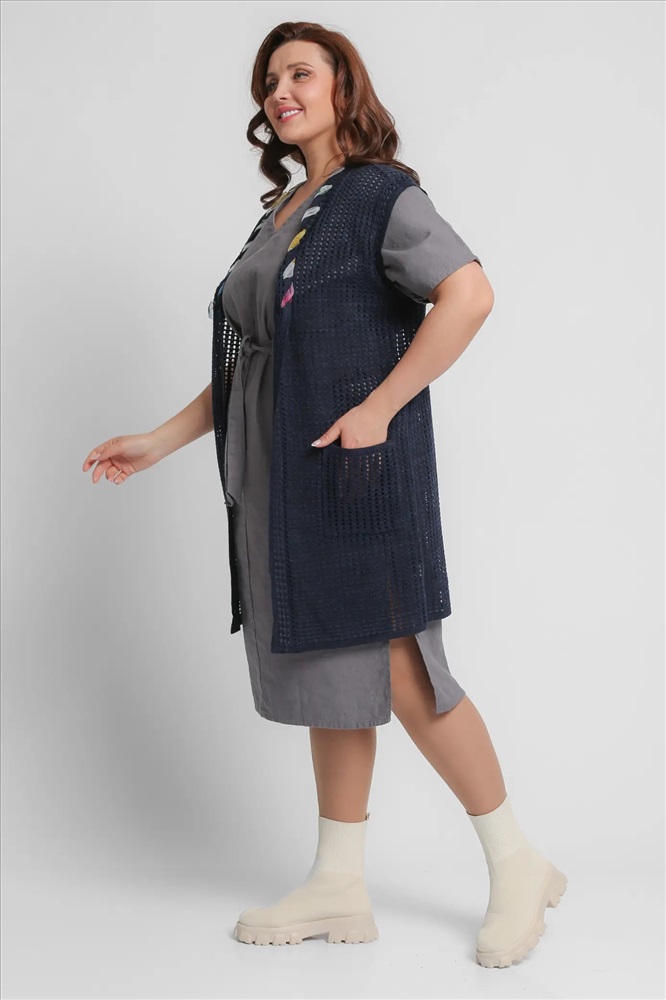 Жакет понравился, ношу 48 размер, он 48-50, так что сидит свободно. Брала на прохладное летнее утро. Спасибо организатору