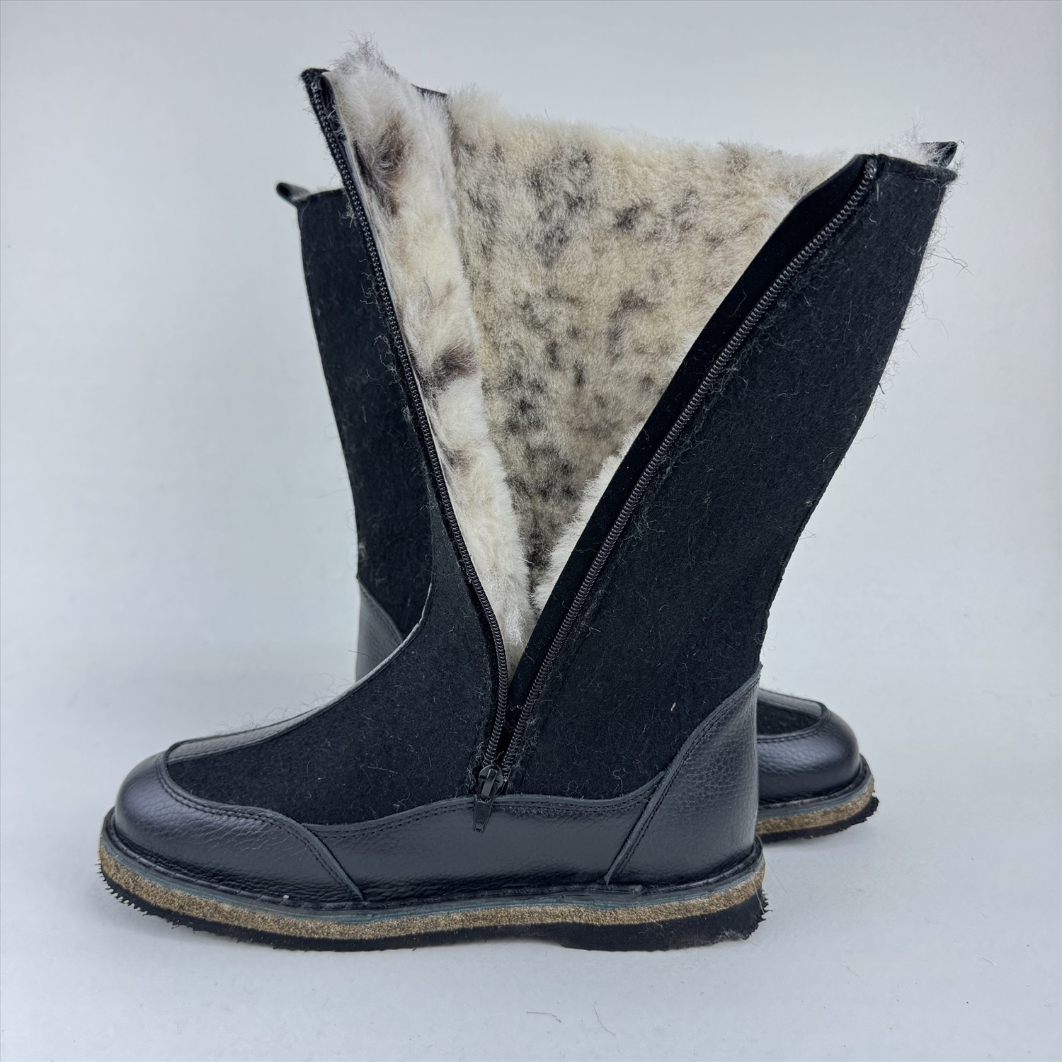 Мужские валенки из чёрного войлока с замком на войлочной подошве 2 фото