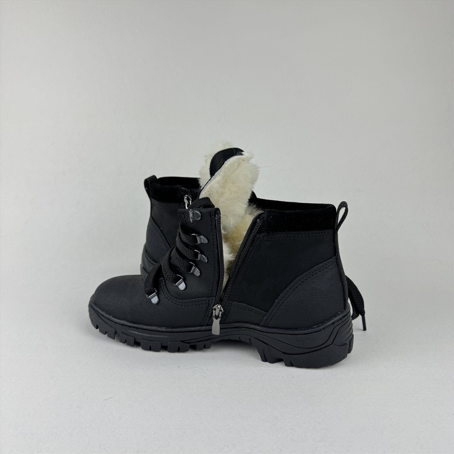 Ботинки женские чёрные на меху, войлочная подошва 6 фото