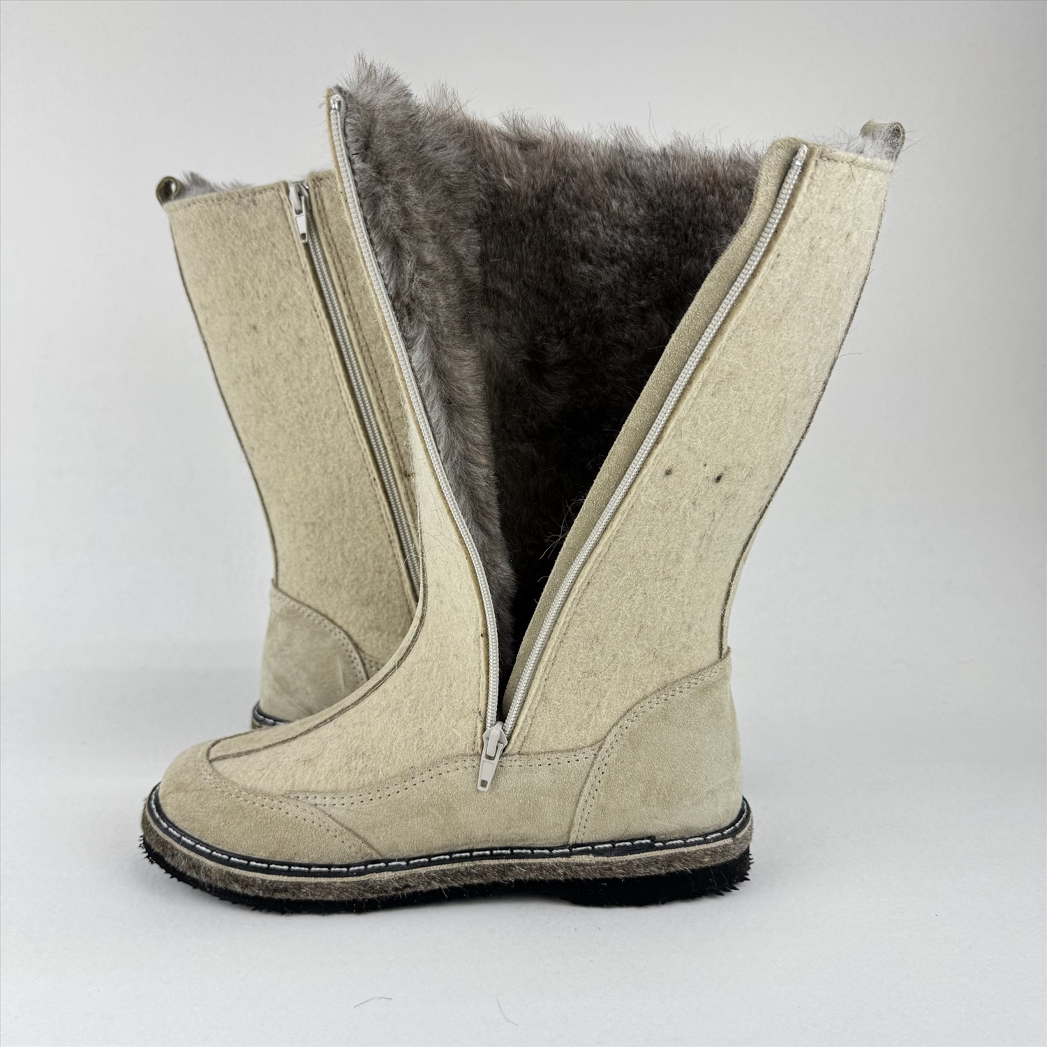 Казаки женские бежевые на меху, войлок 7 фото