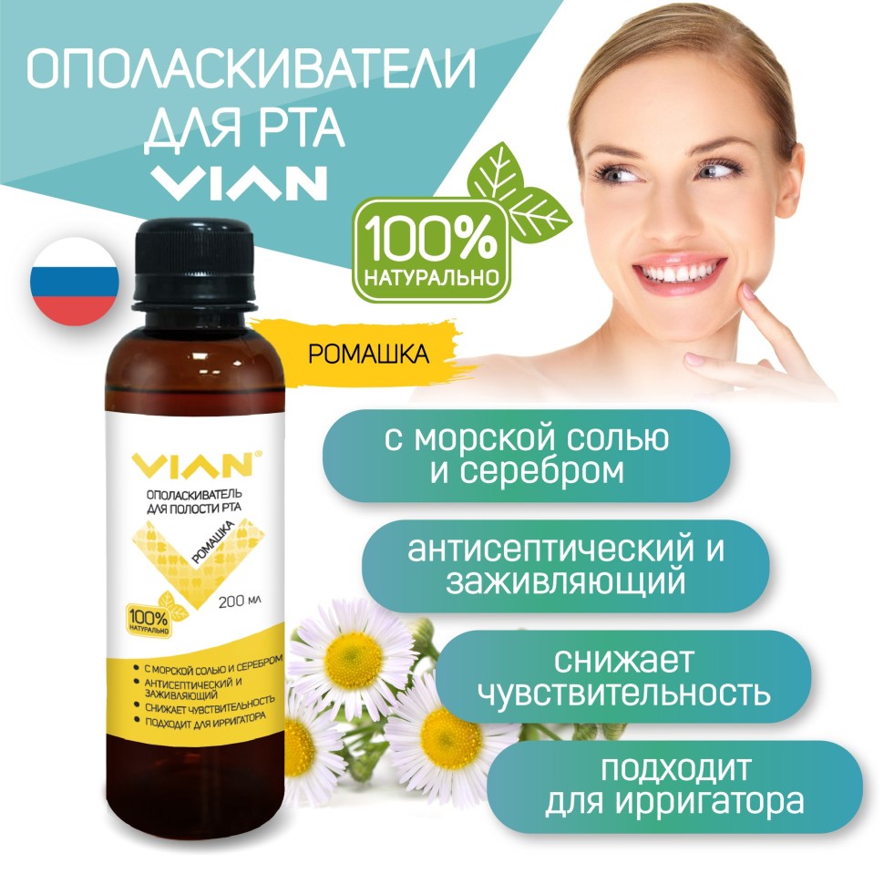 Ополаскиватель для полости рта VIAN "РОМАШКА" с морской солью, 200 мл 6 фото