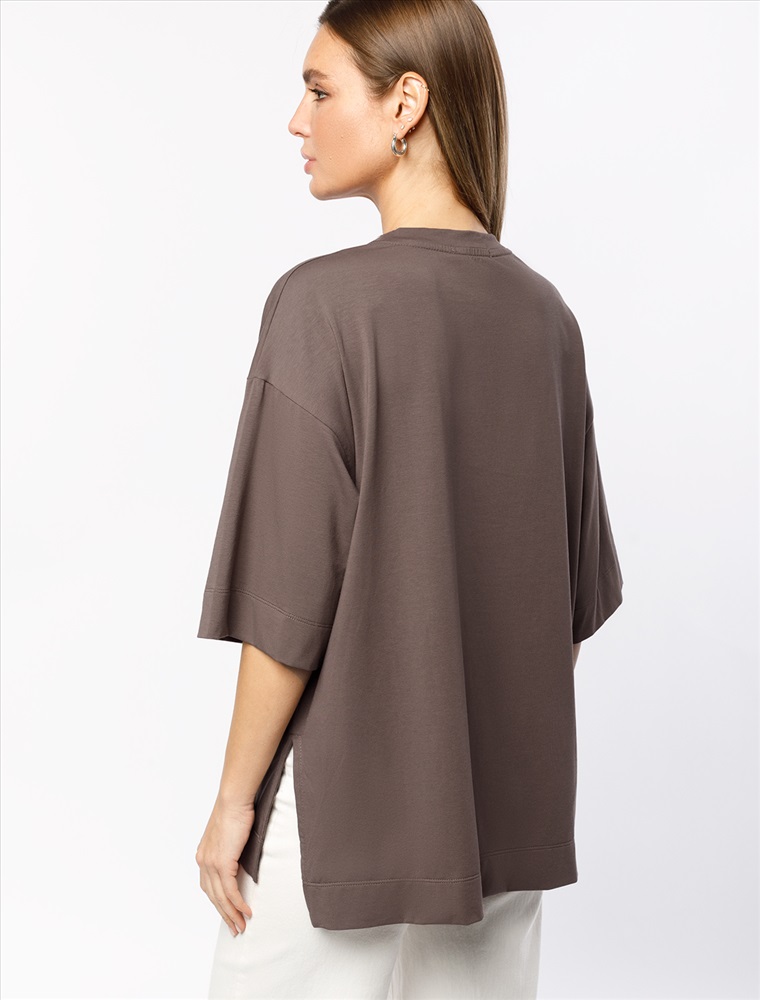 Футболки суперские! На размер 48/50 брала 50. Футболка из трикотажа села идеально по всем параметрам, из хлопка - как оверсайз. Но обе они очень хорошо стройнят. Качество отличное, очень люблю вещи этого бренда.