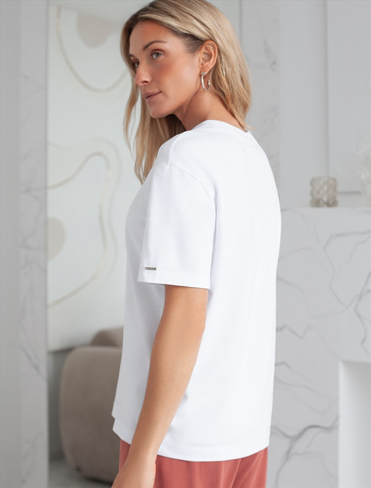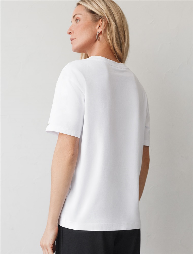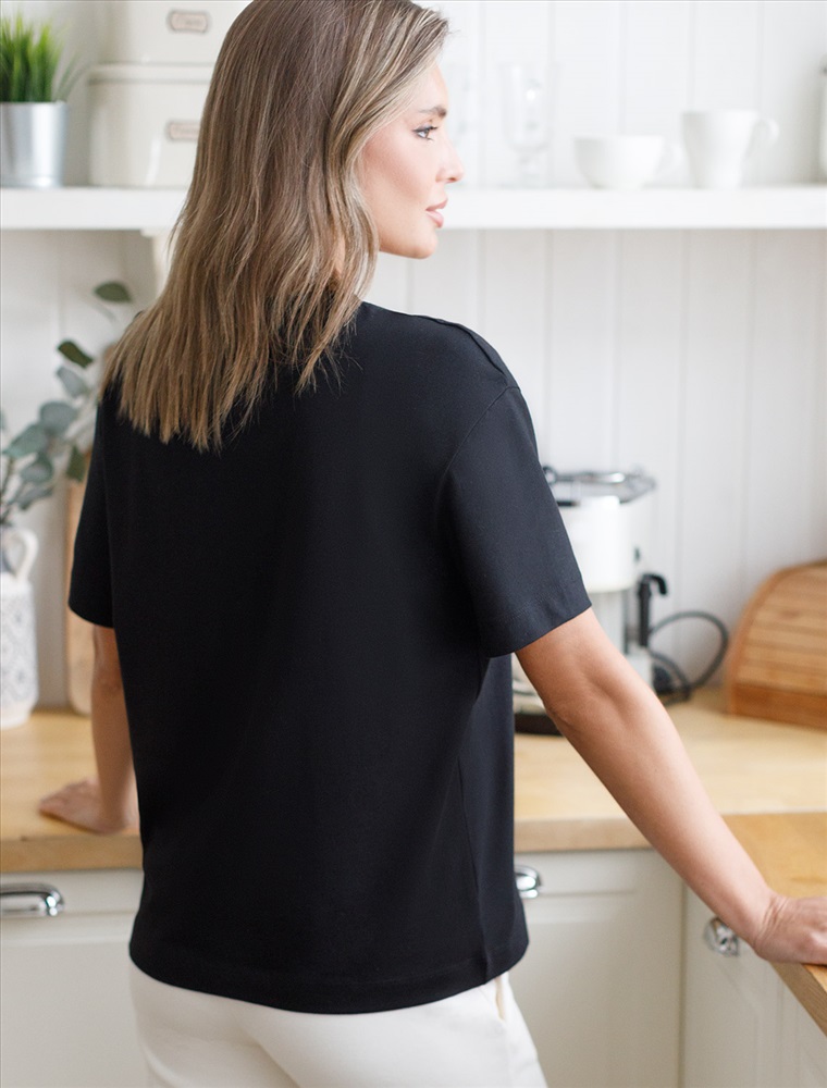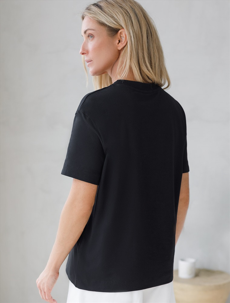 Футболки суперские! На размер 48/50 брала 50. Футболка из трикотажа села идеально по всем параметрам, из хлопка - как оверсайз. Но обе они очень хорошо стройнят. Качество отличное, очень люблю вещи этого бренда.