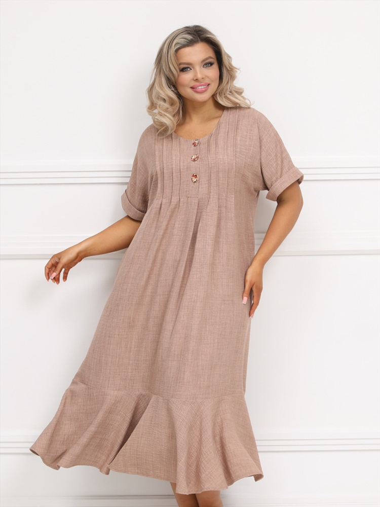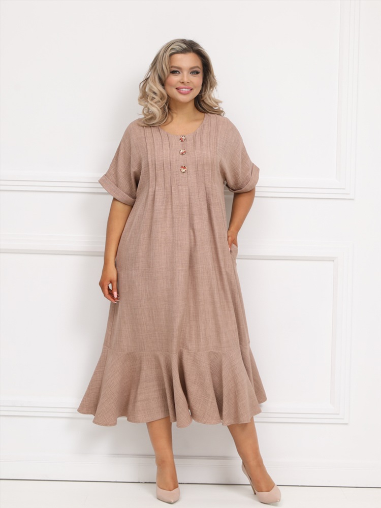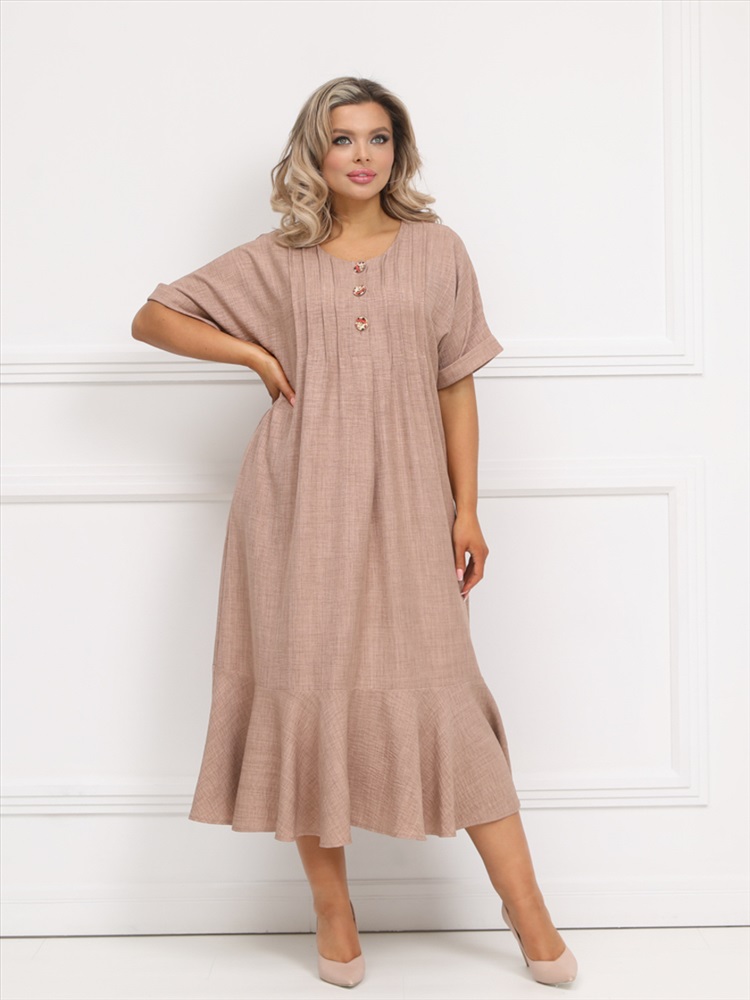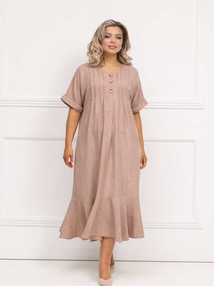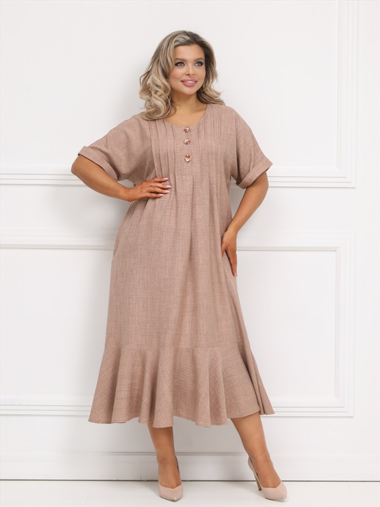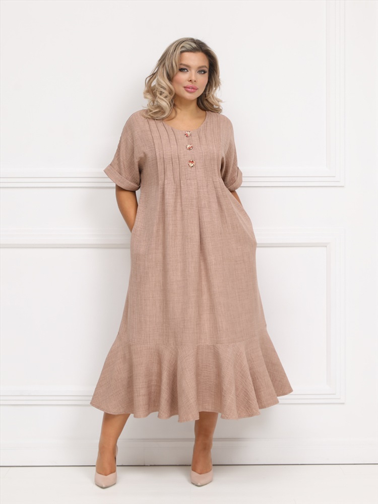 Платье халат. Ткань неплохая и пошив, но мне пришло без второй петельки спереди. Пуговица есть, а чем зацепить её - нет. Придется отдавать платье швее, чтобы вшить. Очень жаль. Придется ещё доплачивать...