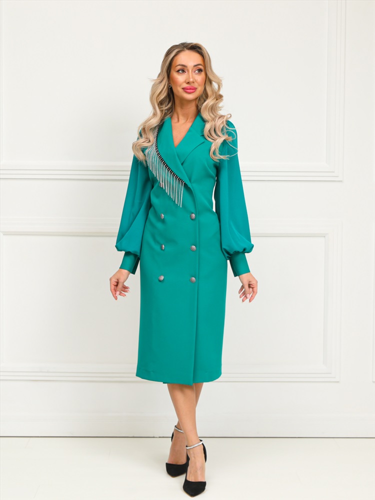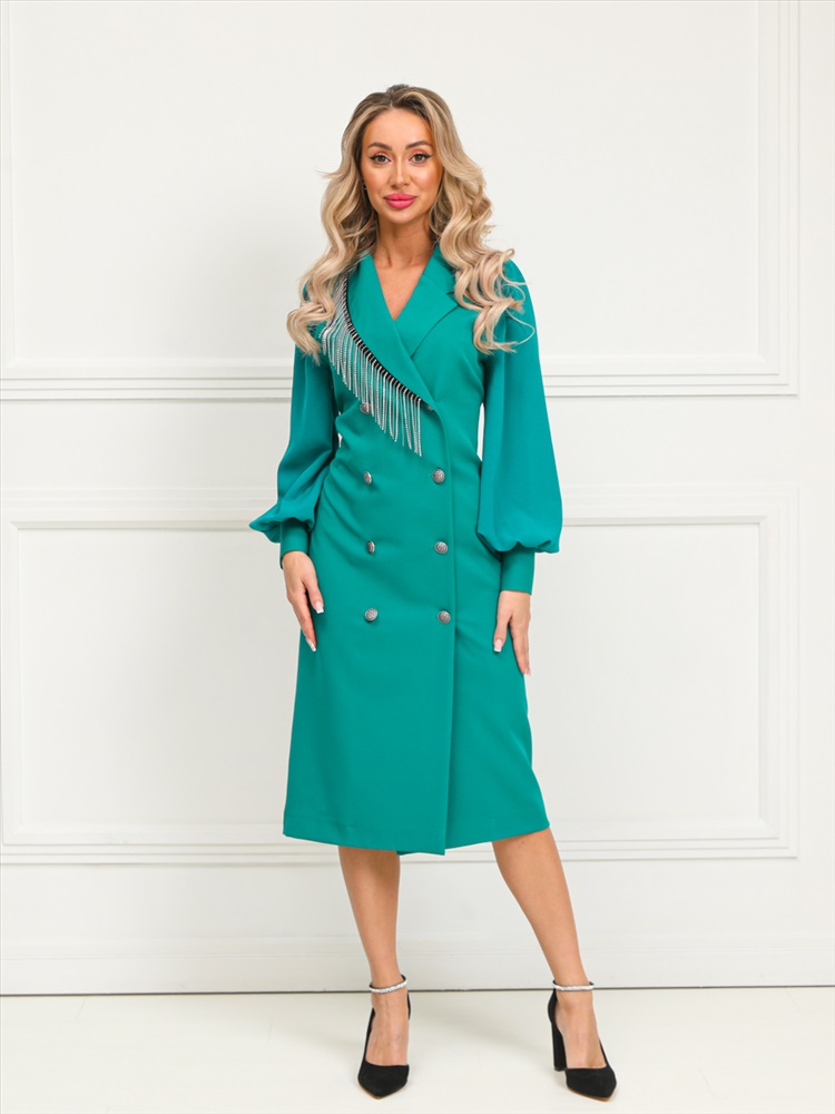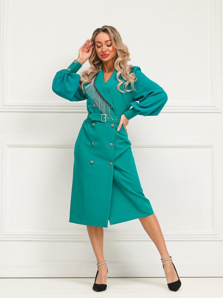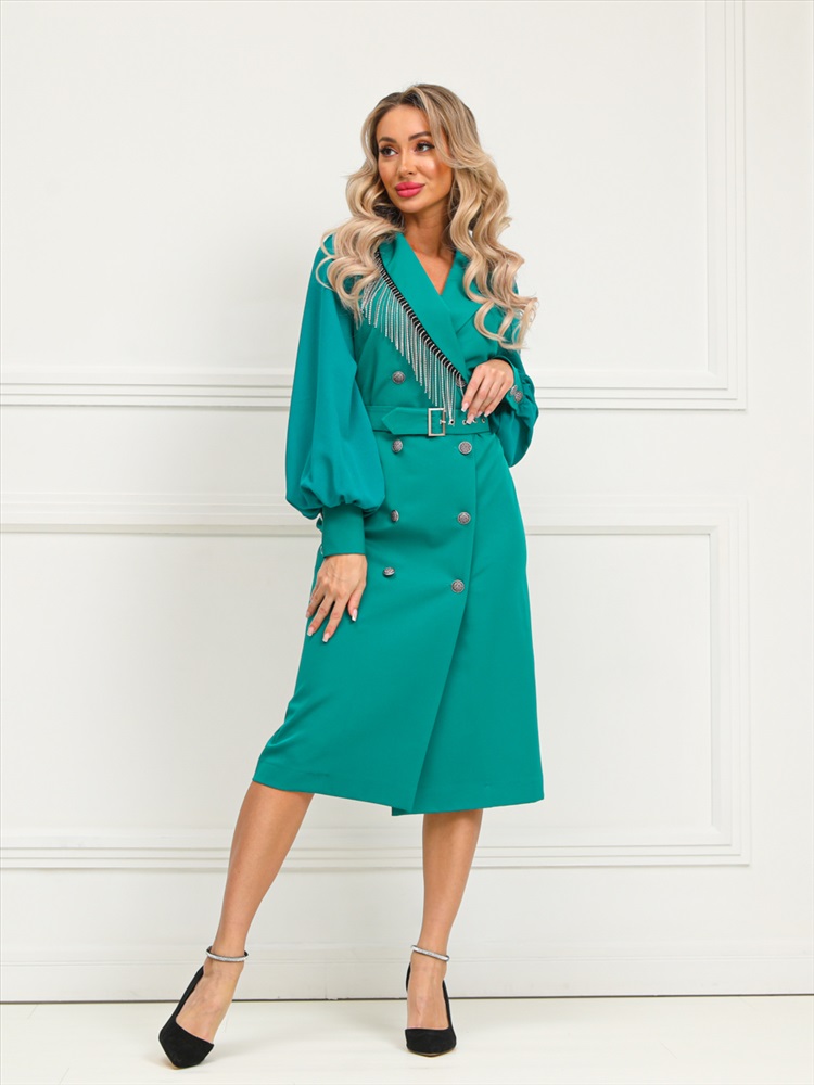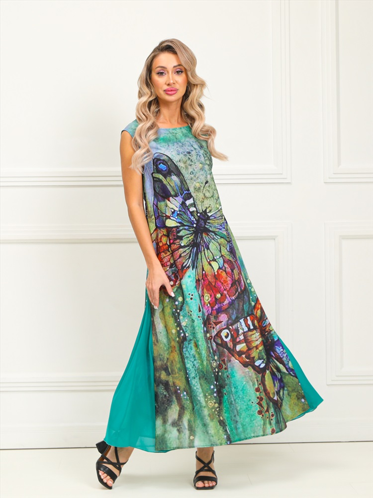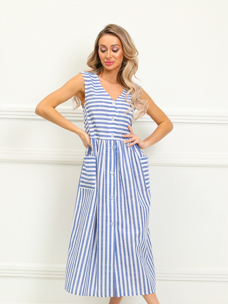 Платье халат. Ткань неплохая и пошив, но мне пришло без второй петельки спереди. Пуговица есть, а чем зацепить её - нет. Придется отдавать платье швее, чтобы вшить. Очень жаль. Придется ещё доплачивать...