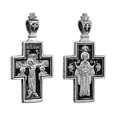 Крест (Образ Знамение) из серебра литье частичное чернение